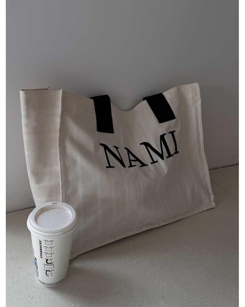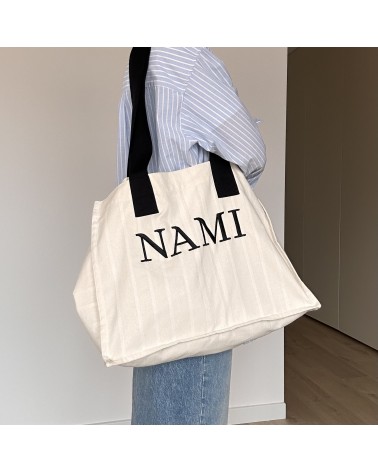 Duża torba typu shopper w delikatne pasy oraz z czarnym haftem.