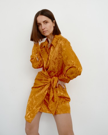 Sukienka o przepięknym kolorze i wyjątkowym wzorze. Możesz nosić ją zarówno do obcasów jak i płaskich butów. Świetnie komponuje się ze złotą biżuterią