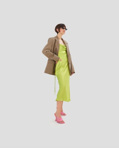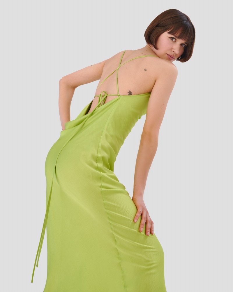 Przepiękna sukienka z wyjątkowym kolorze limonkowej w wersji limitowanej. Ozdobne, wiązane plecy, delikatny dekolt sprawiają, że sukienka Zoe jest oryginalna. W chłodniejsze dni załóż do niej naszą marynarkę Kloe i kowbojki lub  trampki i dżinsową kurtkę.
